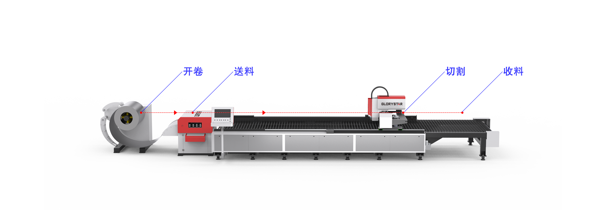 從開卷到切割一站式卷材加工設備;智能控制卷材長度;高效可旋轉(zhuǎn)板條,防刮傷